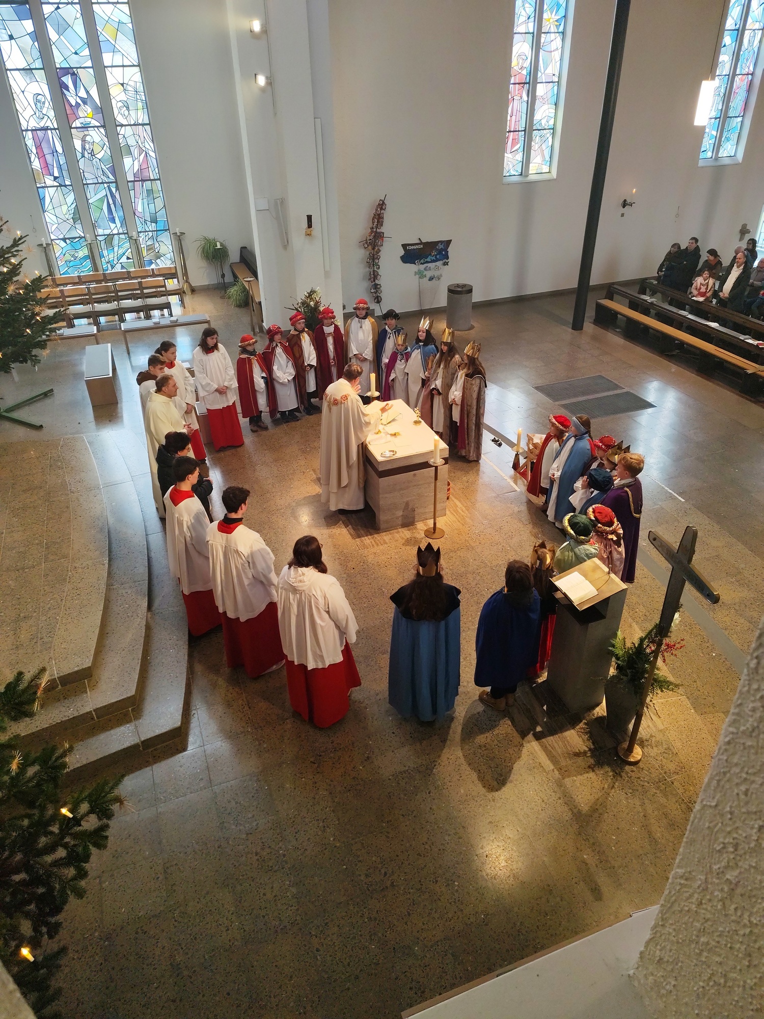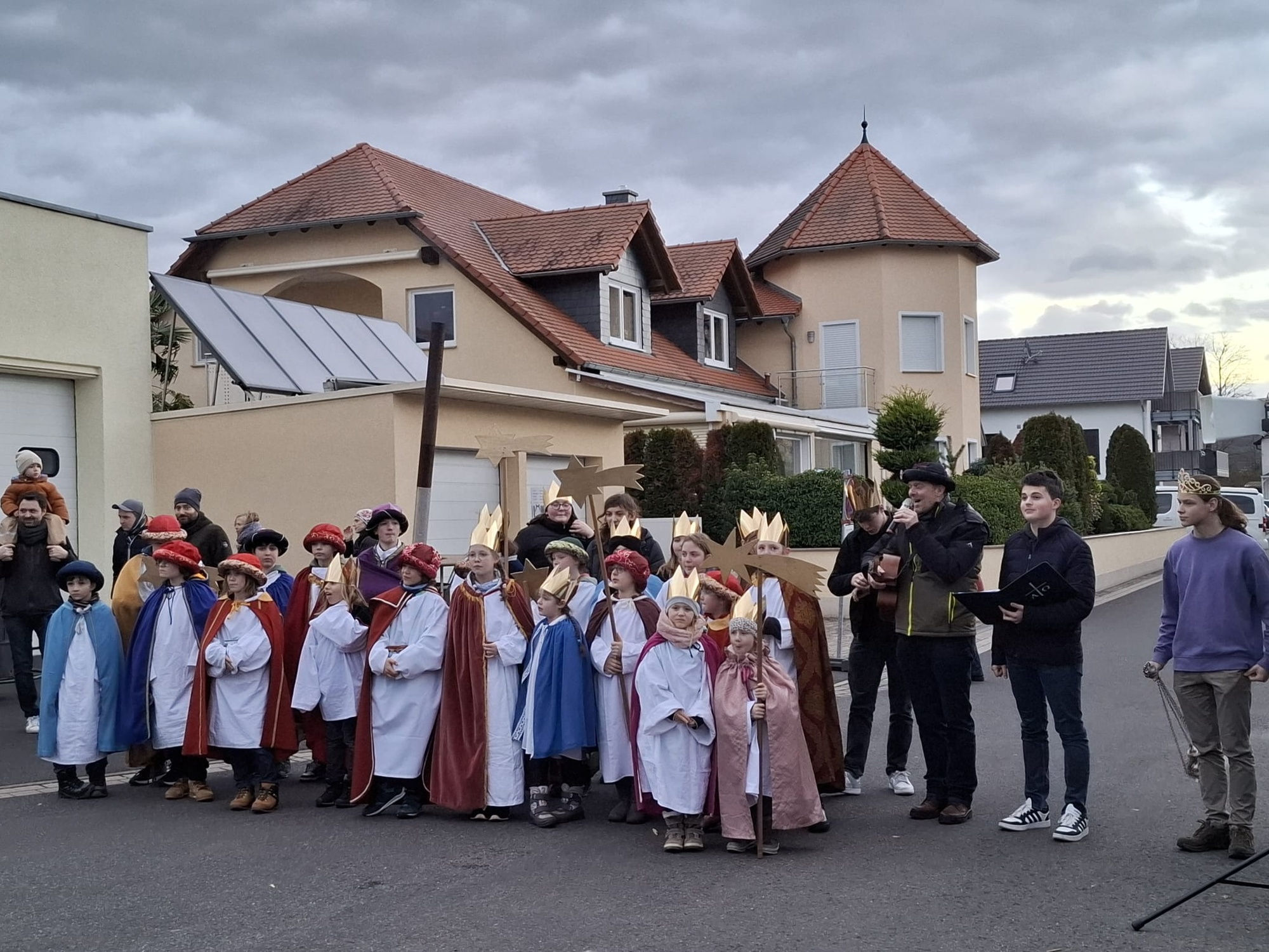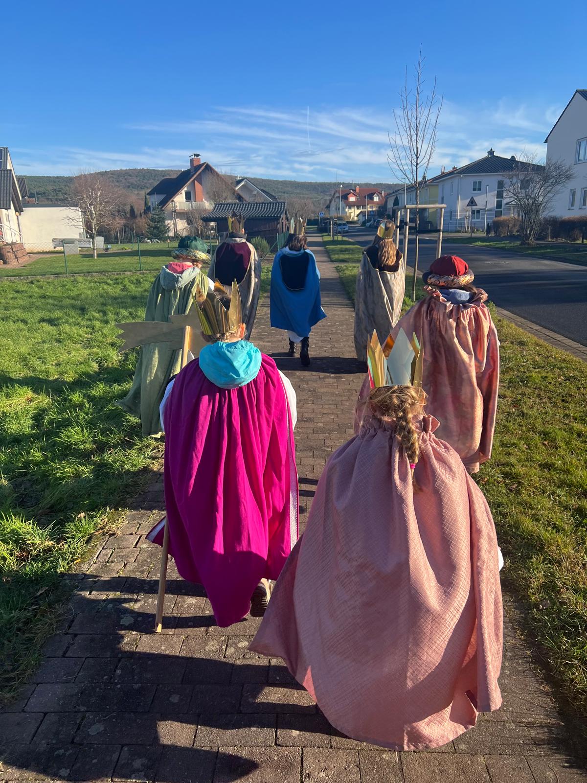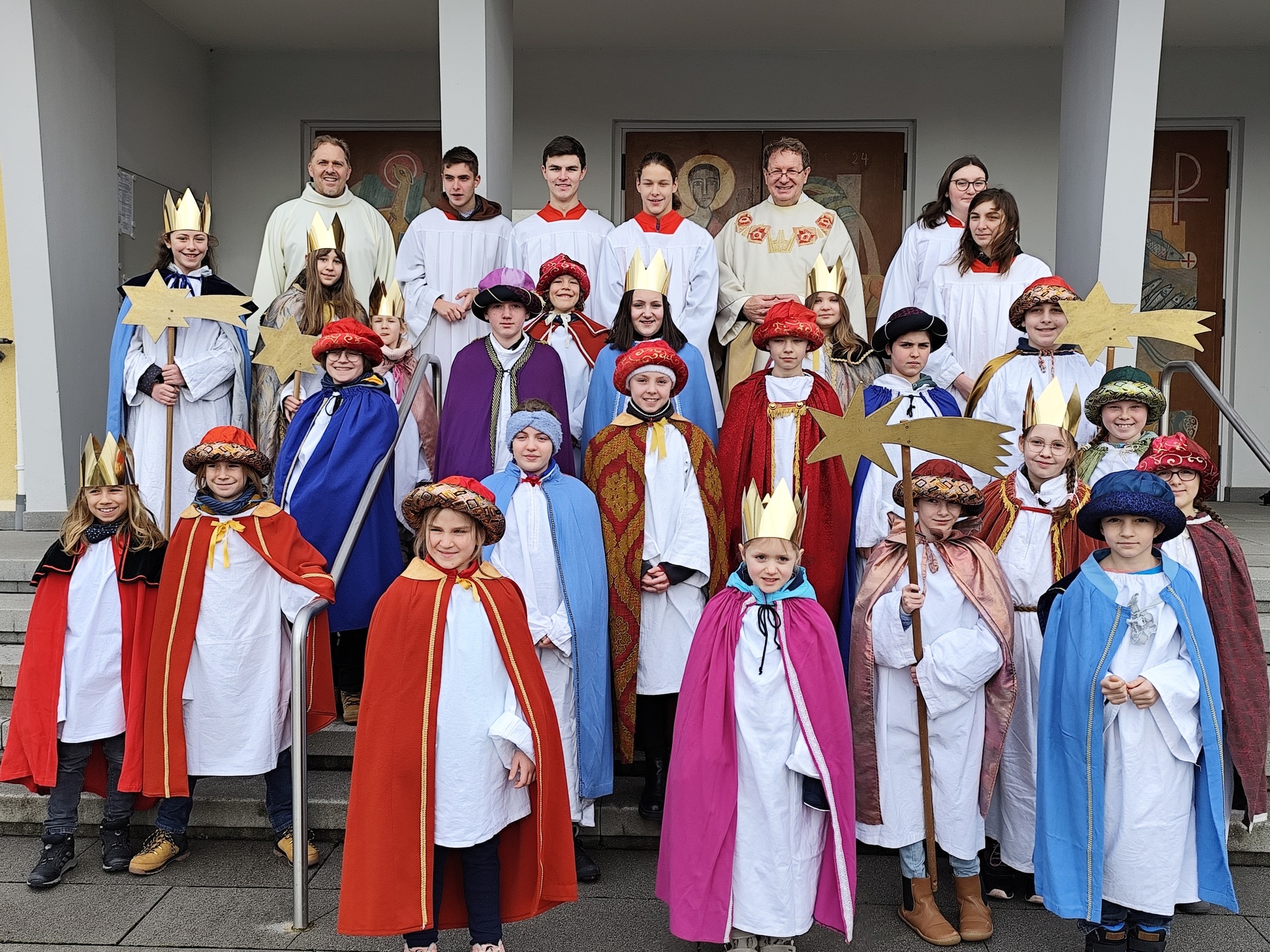 Mit der Umstellung der Sternsingeraktion haben wir auch heuer wieder gute Erfahrungen gemacht. Ein Segensbrief der Sternsinger wurden mit einem Segensaufklebern und einem Haussegen wurde per Post an die katholischen Haushalte unserer Pfarreiengemeinschaft geschickt. Die Sternsinger waren am 6. Januar in den Gottesdiensten und am Nachmittag an verschiedenen Plätzen in Elsenfeld, Rück-Schippach und Eichelsbach präsent. Die Sternsinger haben Lieder gesungen, ihre Segenssprüche aufgesagt und ein frohes neues Jahr gewünscht. Es war schön, dass sich an den Plätzen eine große Anzahl von Gemeindemitgliedern versammelt hatten. Auch die Seniorenheime wurden besucht. Auf Vorschlag des Roten Kreuzes in Elsenfeld, fand zum Abschluss der Aktion ein Beisammensein in der Turmstraße statt, wo es Kinderpunsch, Glühwein und Bratwürste gab. Danke an das Rote Kreuz für diese tolle Idee und auch dafür, dass die Sternsinger die Hälfte der Einnahmen als Spenden überreicht bekamen. Auf Wunsch besuchten die Sternsinger in unseren Orten auch die Häuser. So wurden ca. 60 Hausbesuche gemacht. Insgesamt waren in unserer Pfarreien-gemeinschaft 55 Kinder und Jugendlichen an der Aktion beteiligt.