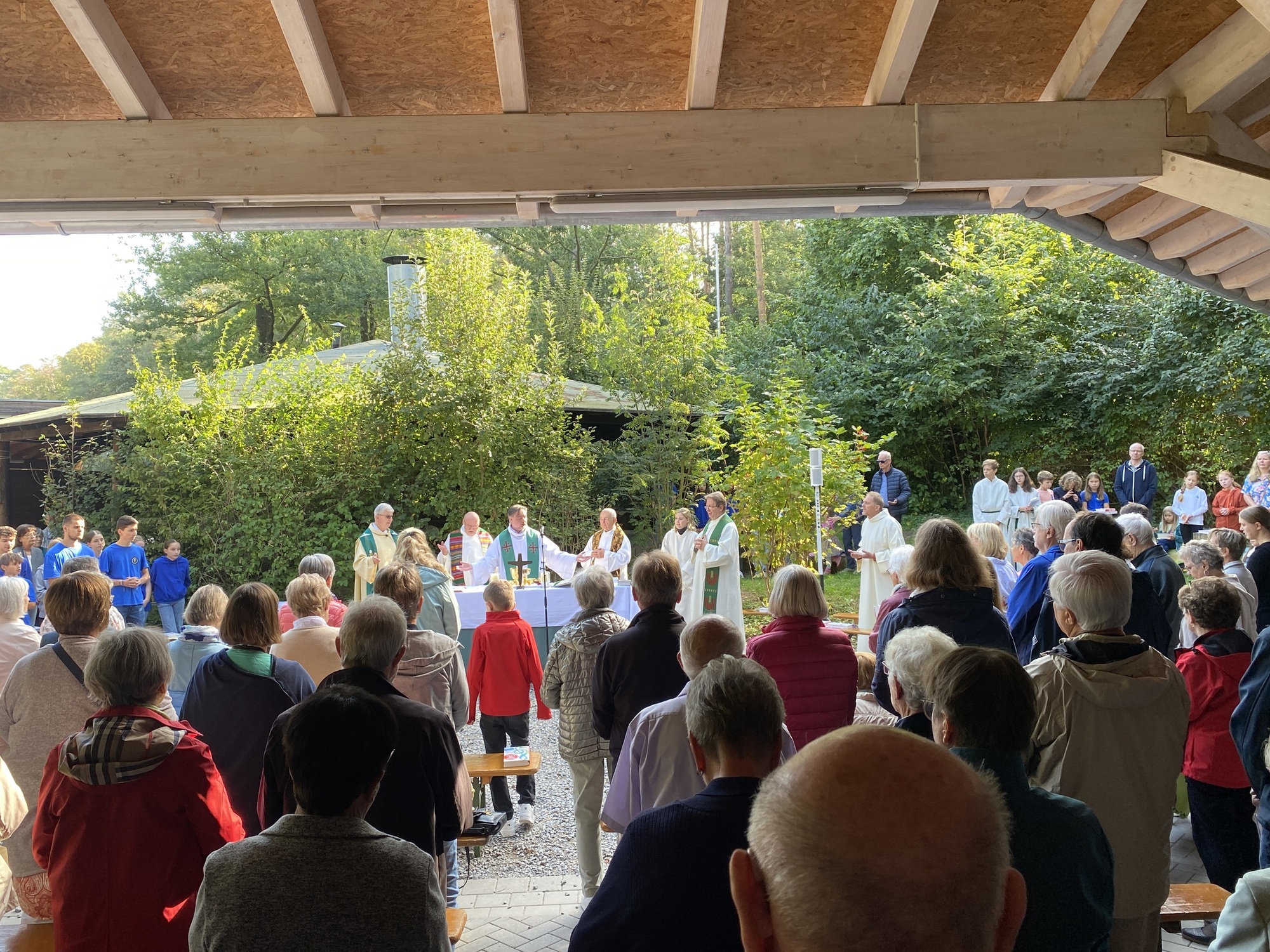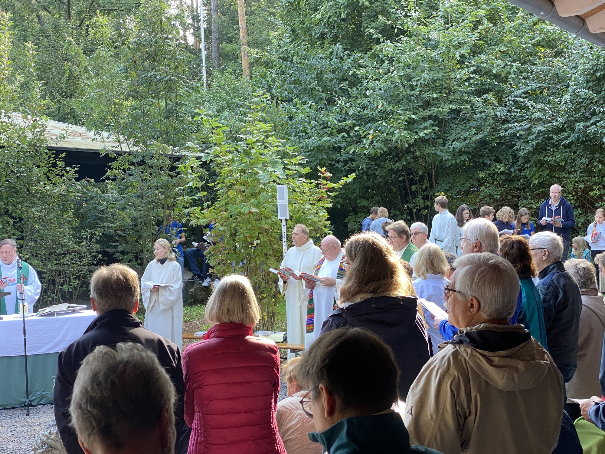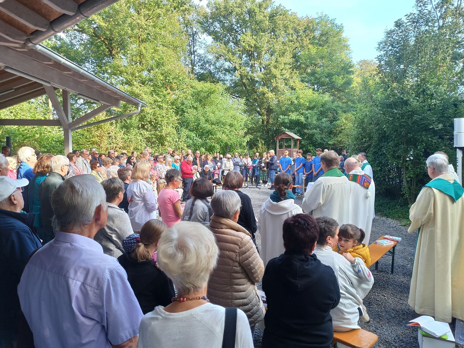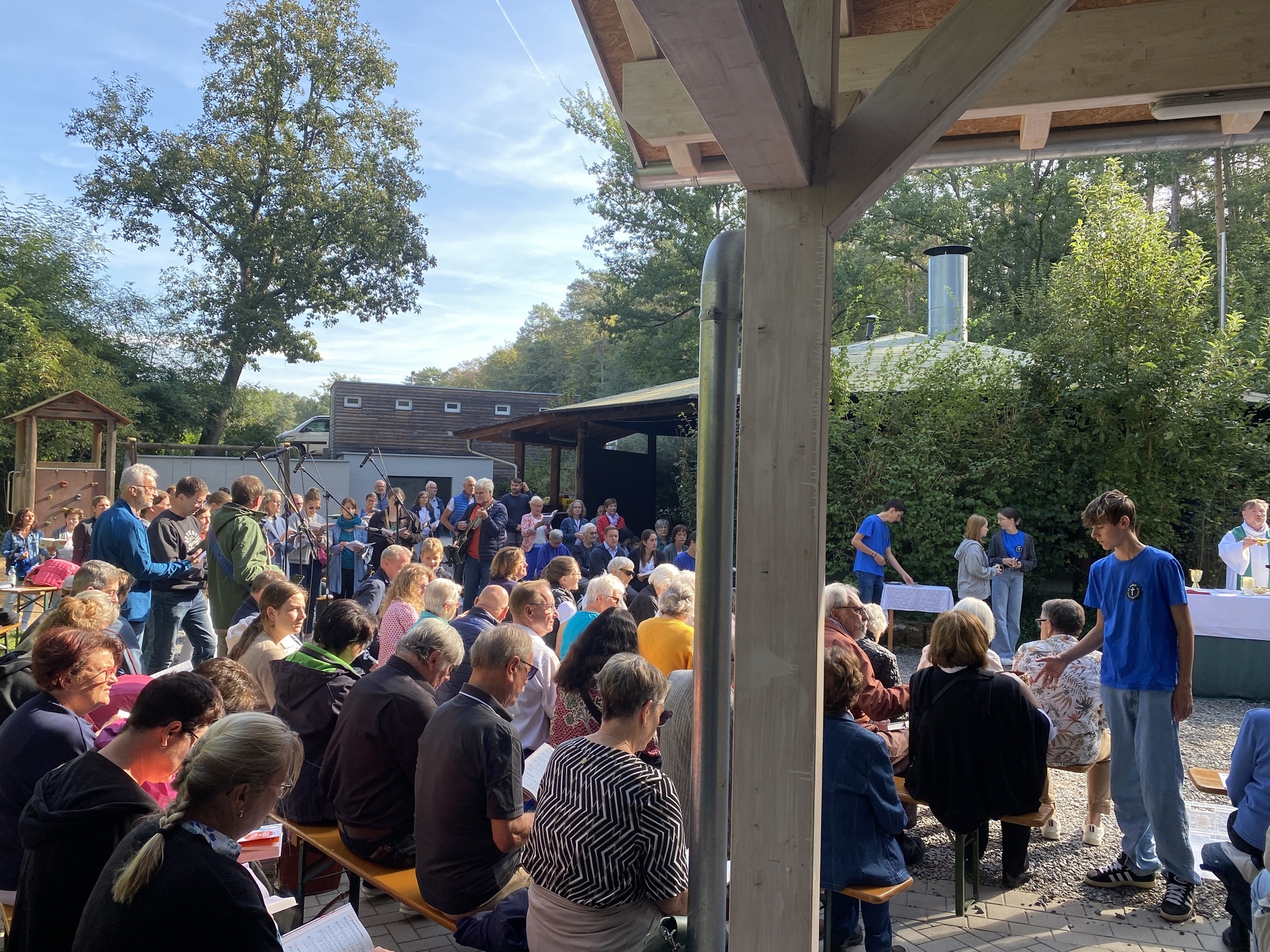 Auch in diesem Jahr kamen die Pfarreiengemeinschaften des Pastoralen Raumes Elsenfeld, Kleinwallstadt, Sulzbach, Leidersbach zusammen, um am 22. September 2024 einen gemeinsamen Gottesdienst im Pastoralen Raum zu feiern. Der Grillplatz der Gemeinde Sulzbach bot den idealen Standort für die ca. 300 Mitfeiernden. Pfarrer Kycia von Sulzbach und Pastoralreferentin Marie-Christin Herzog führten durch den Gottesdienst, der musikalisch von den „Tounies“ aus Kleinwallstadt bereichert wurde.