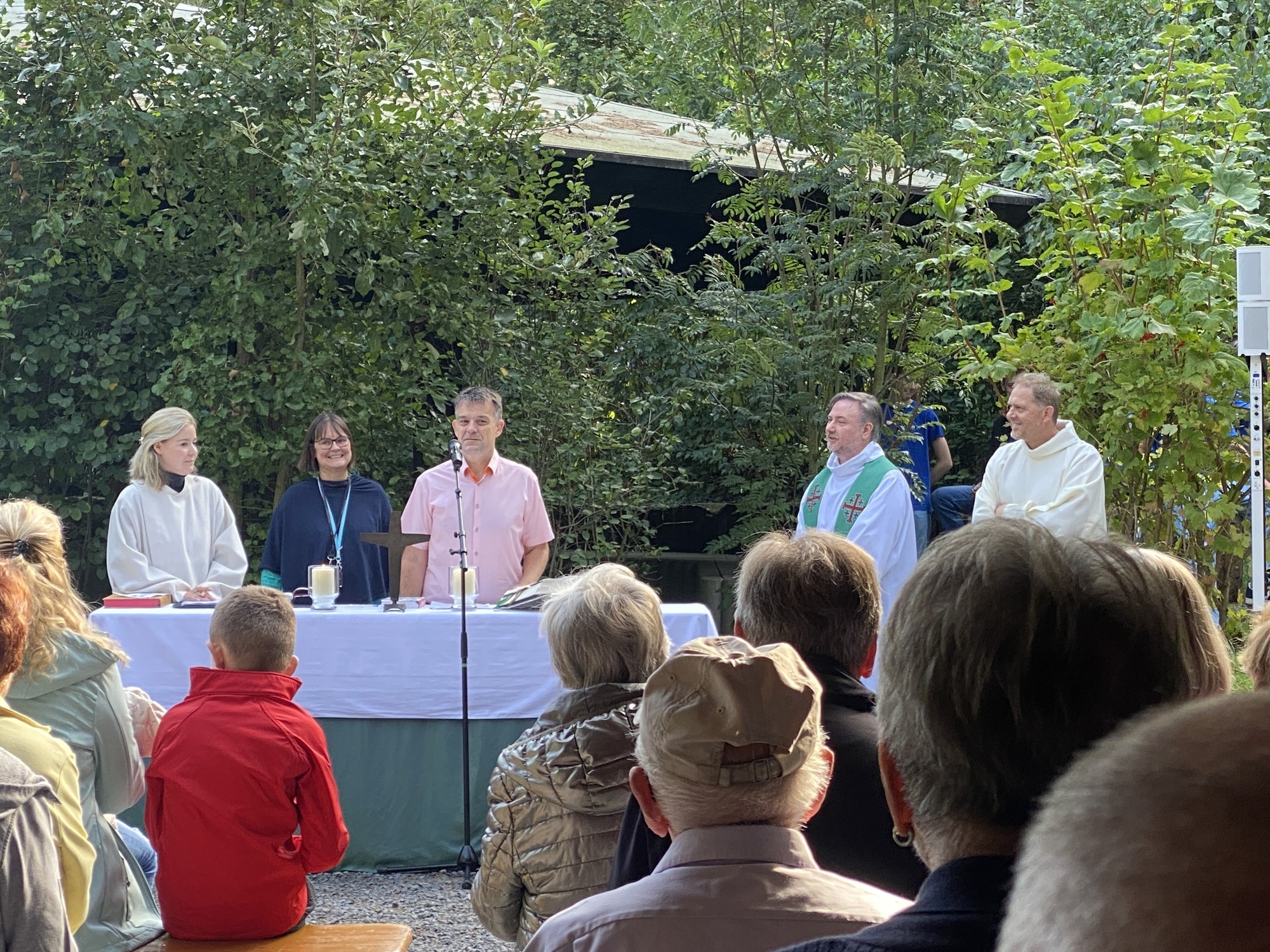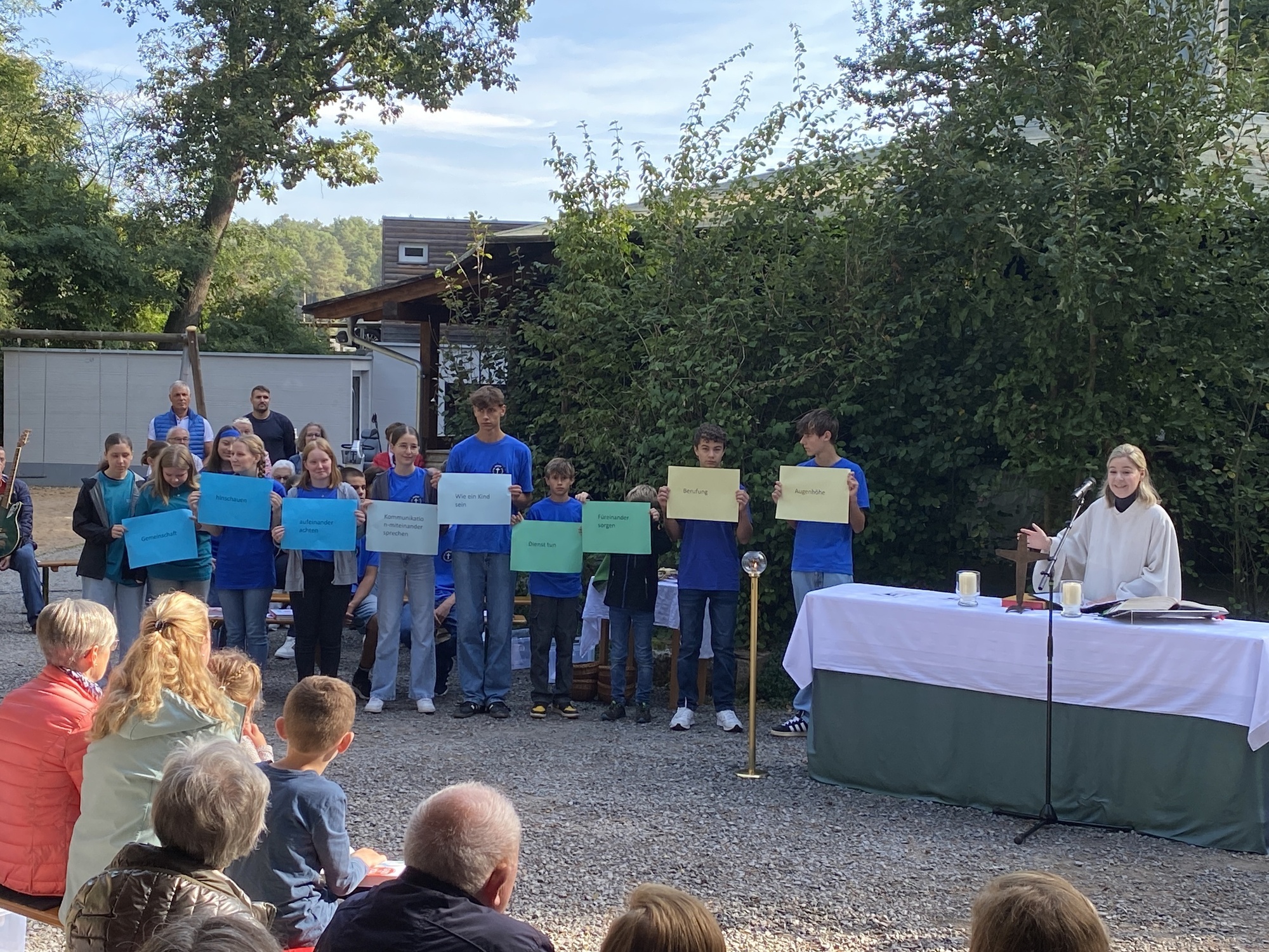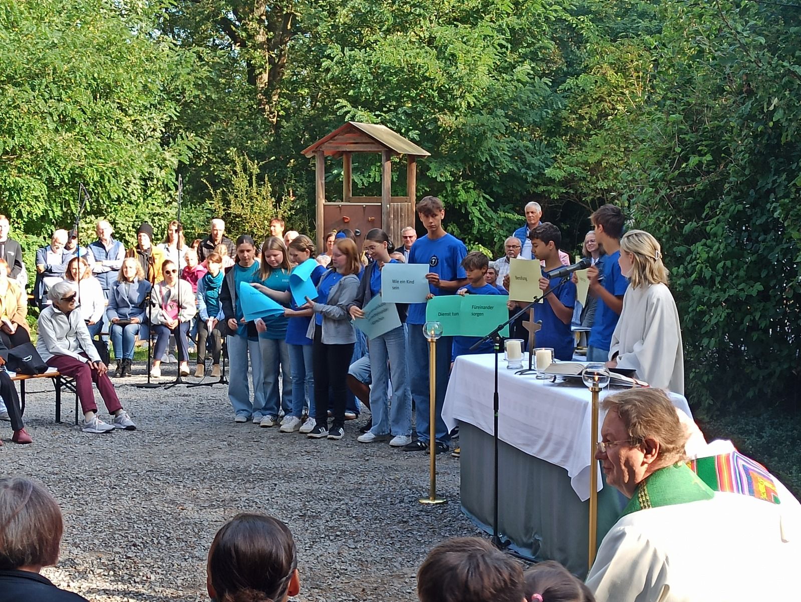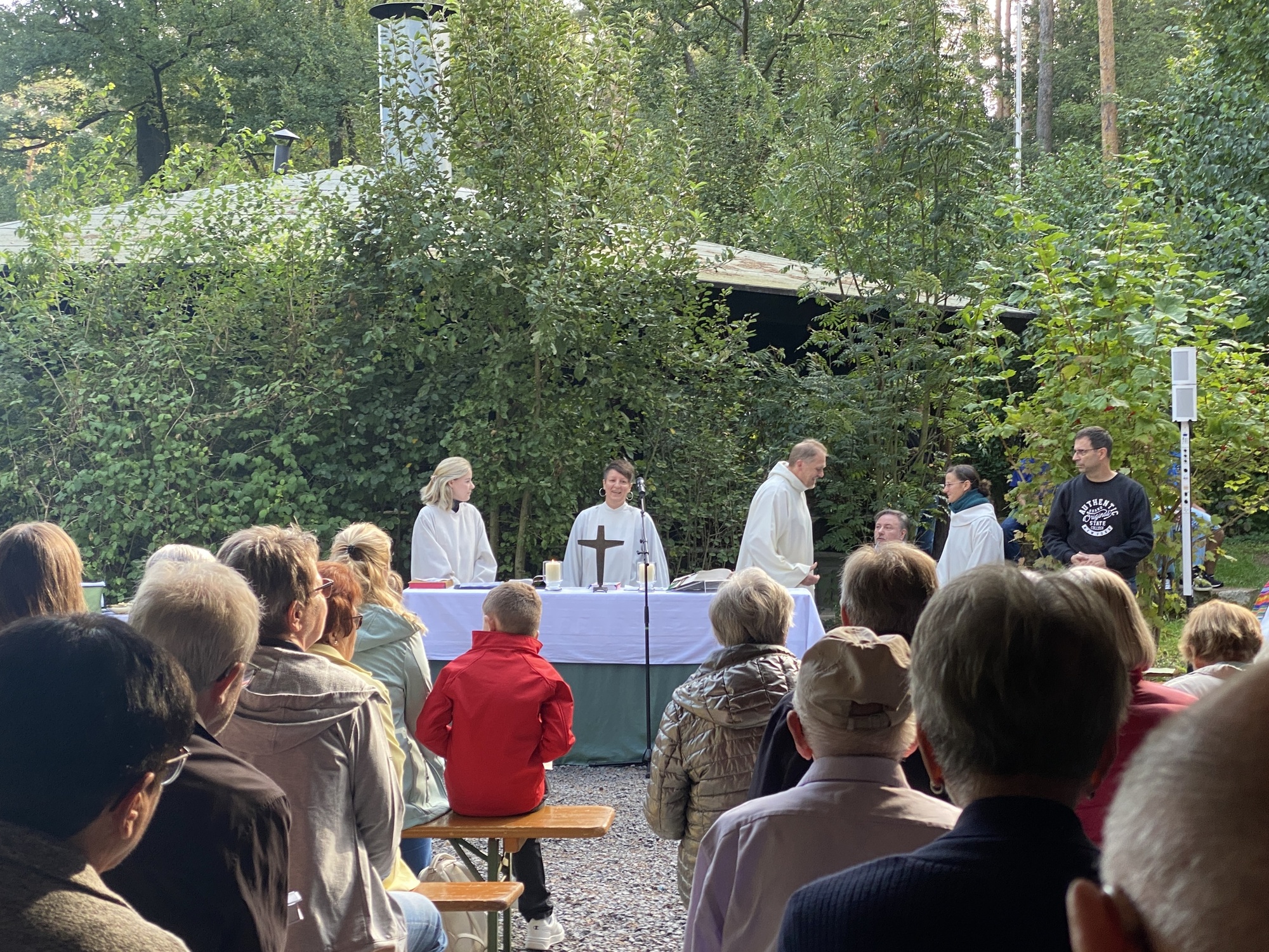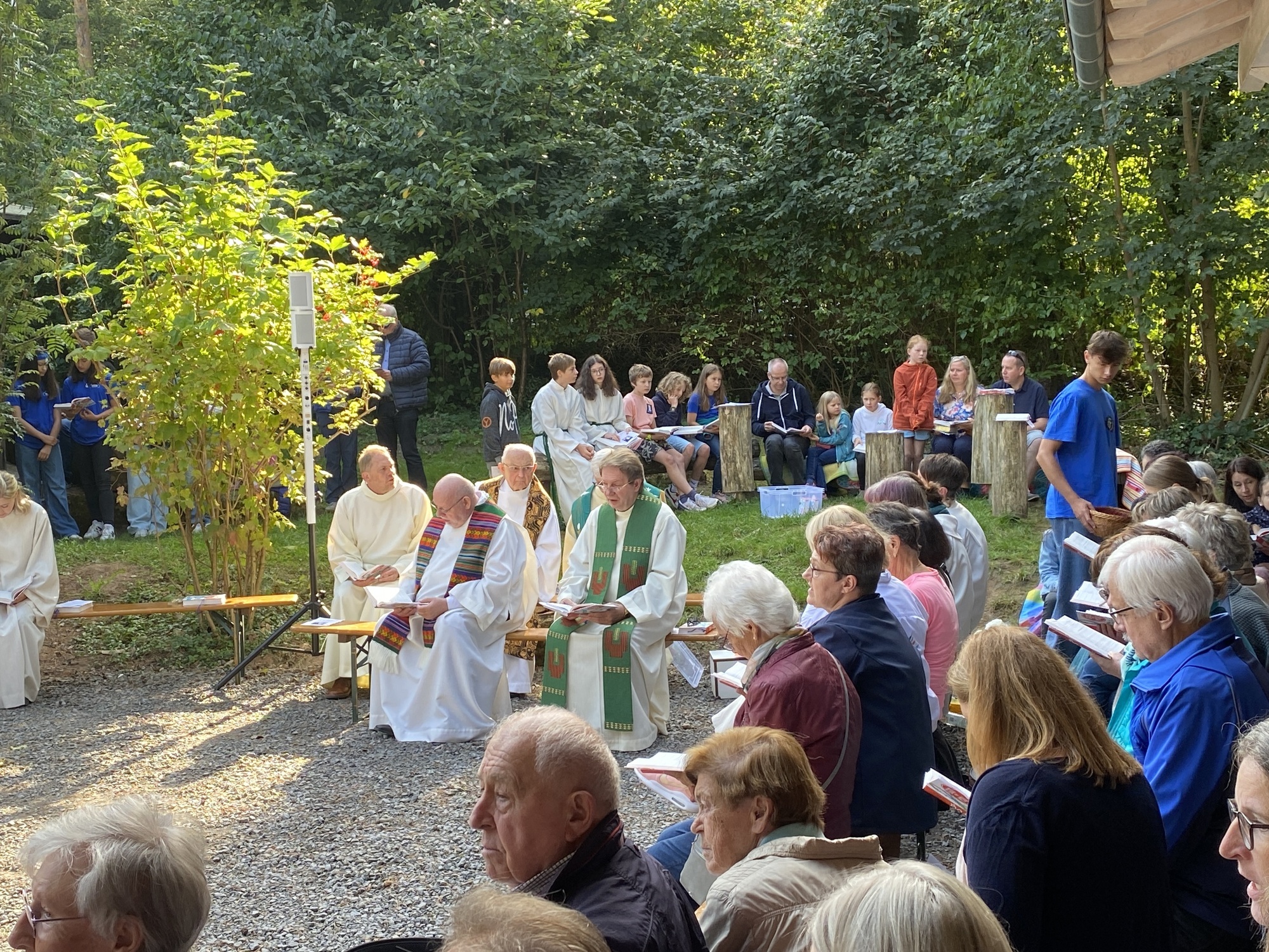 Auch in diesem Jahr kamen die Pfarreiengemeinschaften des Pastoralen Raumes Elsenfeld, Kleinwallstadt, Sulzbach, Leidersbach zusammen, um am 22. September 2024 einen gemeinsamen Gottesdienst im Pastoralen Raum zu feiern. Der Grillplatz der Gemeinde Sulzbach bot den idealen Standort für die ca. 300 Mitfeiernden. Pfarrer Kycia von Sulzbach und Pastoralreferentin Marie-Christin Herzog führten durch den Gottesdienst, der musikalisch von den „Tounies“ aus Kleinwallstadt bereichert wurde.