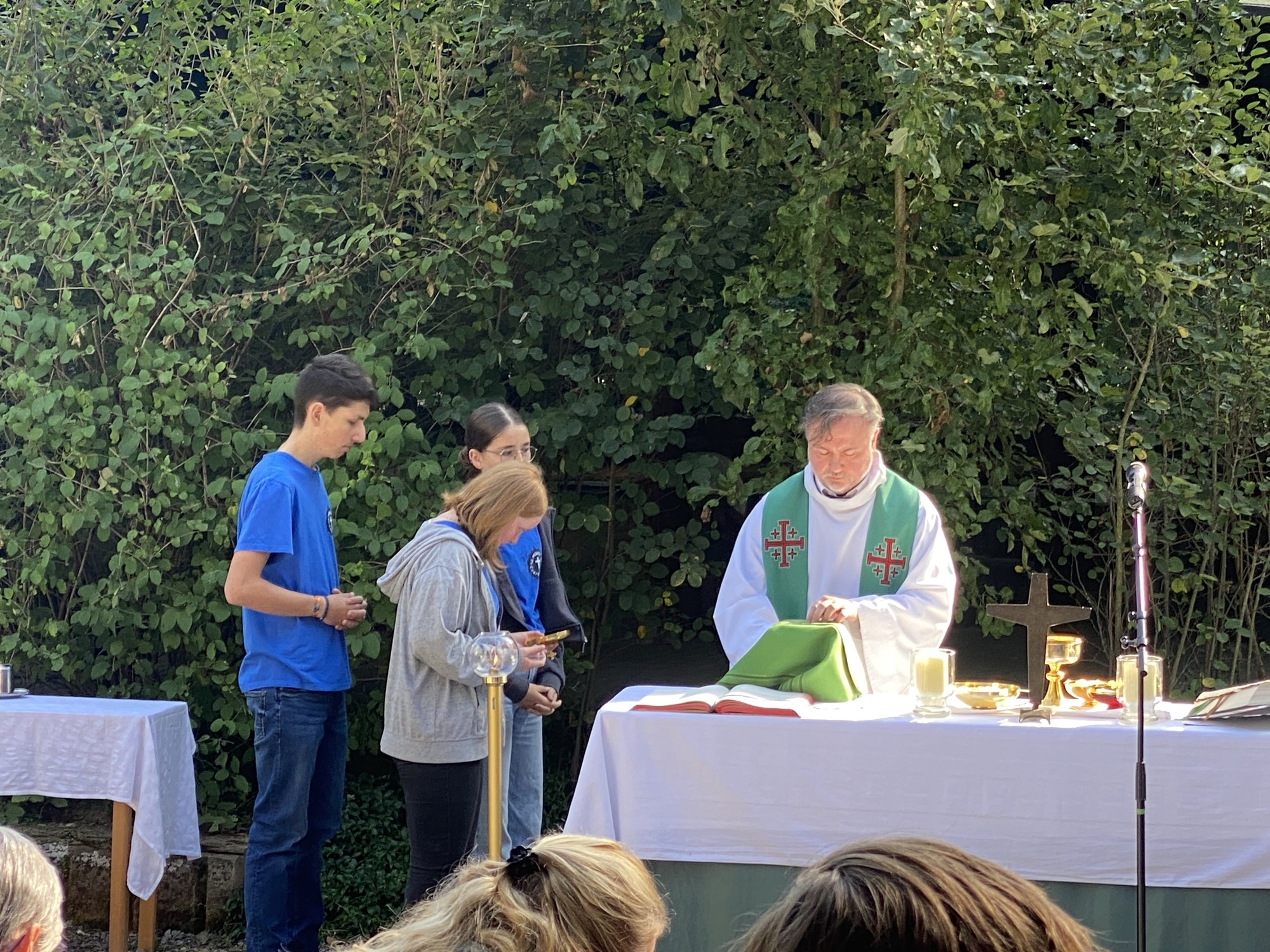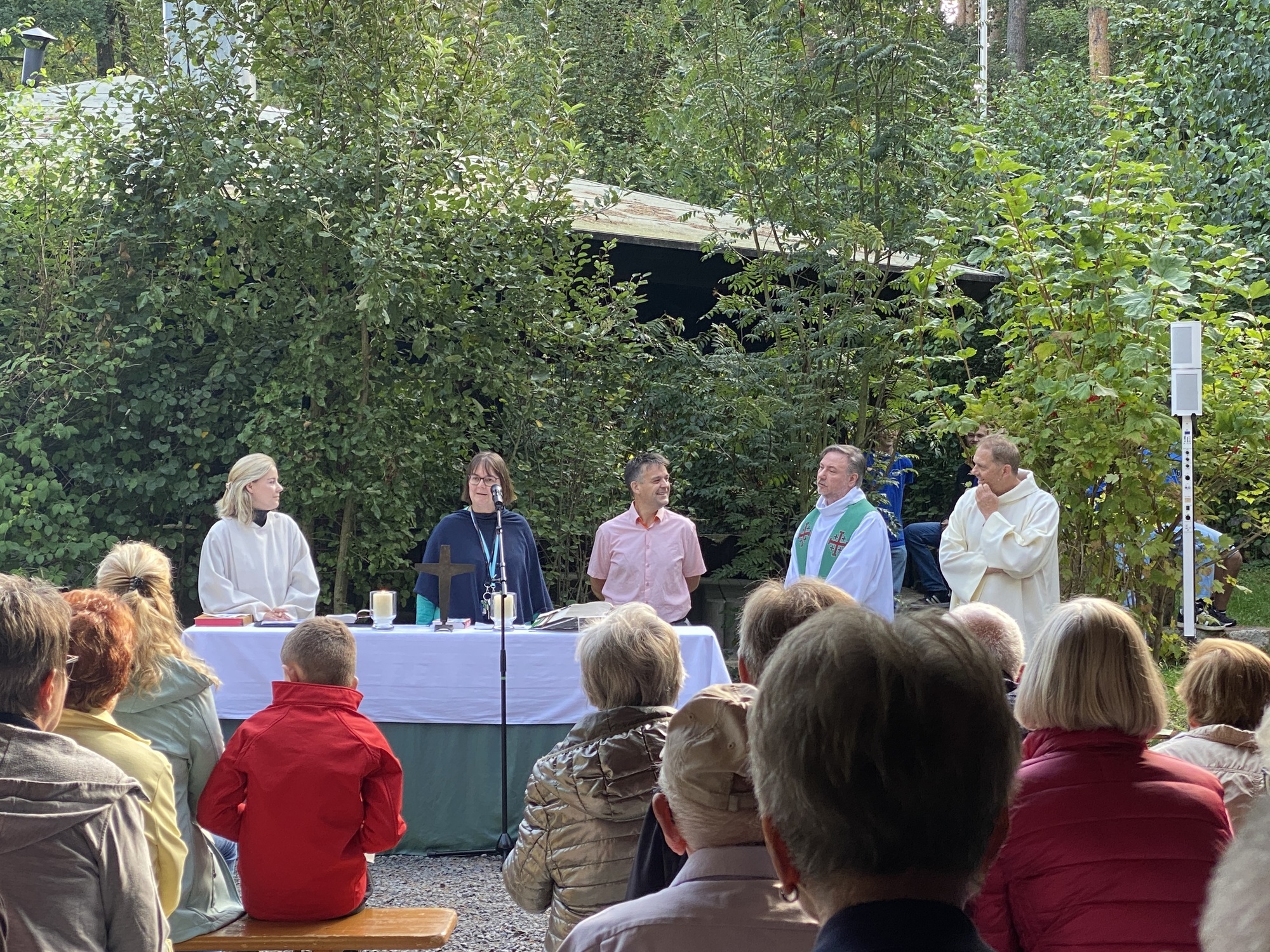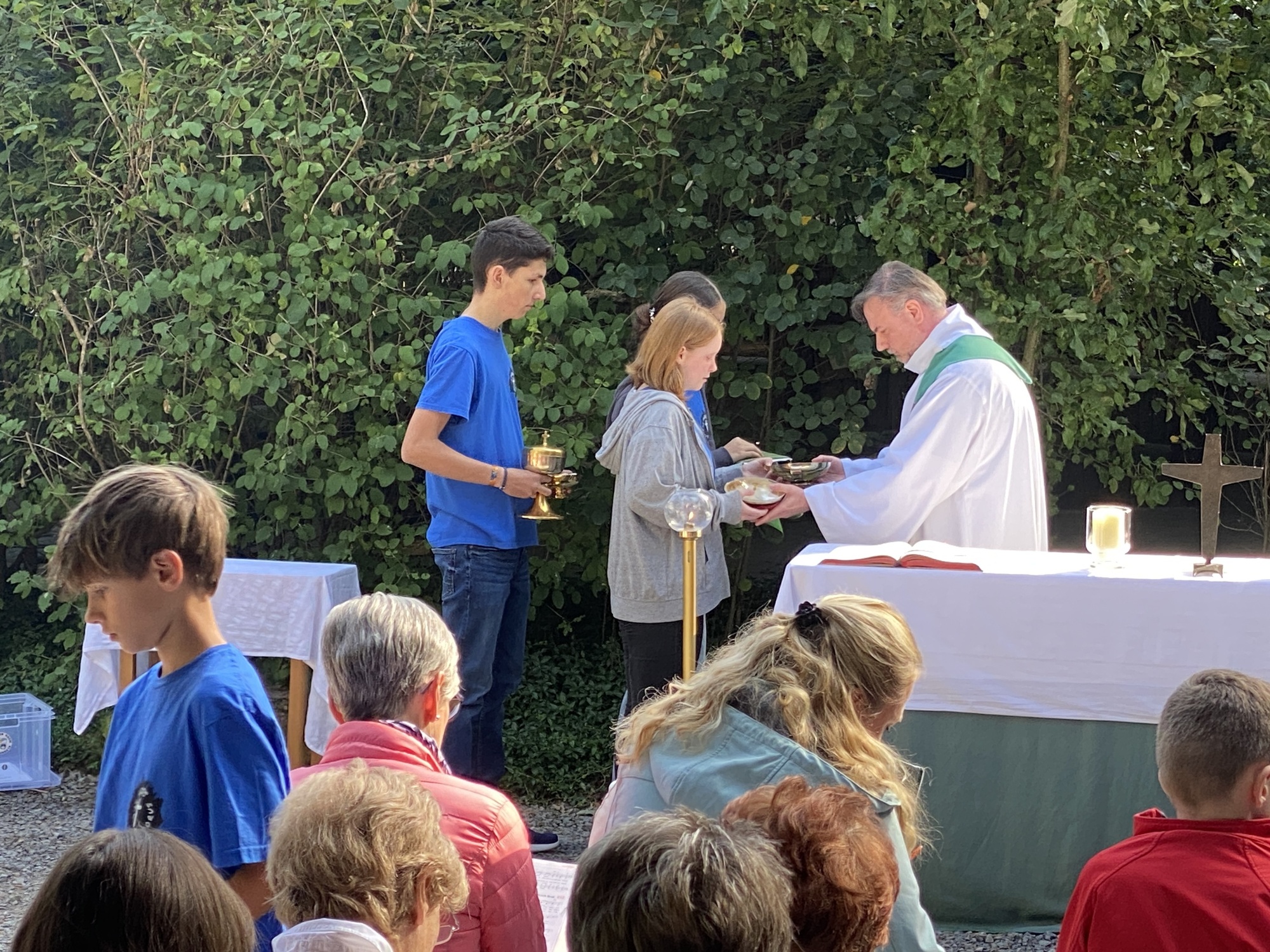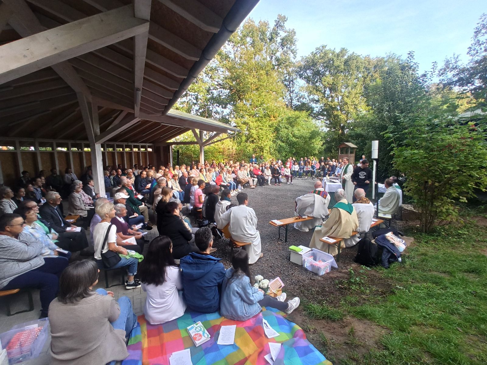 Auch in diesem Jahr kamen die Pfarreiengemeinschaften des Pastoralen Raumes Elsenfeld, Kleinwallstadt, Sulzbach, Leidersbach zusammen, um am 22. September 2024 einen gemeinsamen Gottesdienst im Pastoralen Raum zu feiern. Der Grillplatz der Gemeinde Sulzbach bot den idealen Standort für die ca. 300 Mitfeiernden. Pfarrer Kycia von Sulzbach und Pastoralreferentin Marie-Christin Herzog führten durch den Gottesdienst, der musikalisch von den „Tounies“ aus Kleinwallstadt bereichert wurde.
