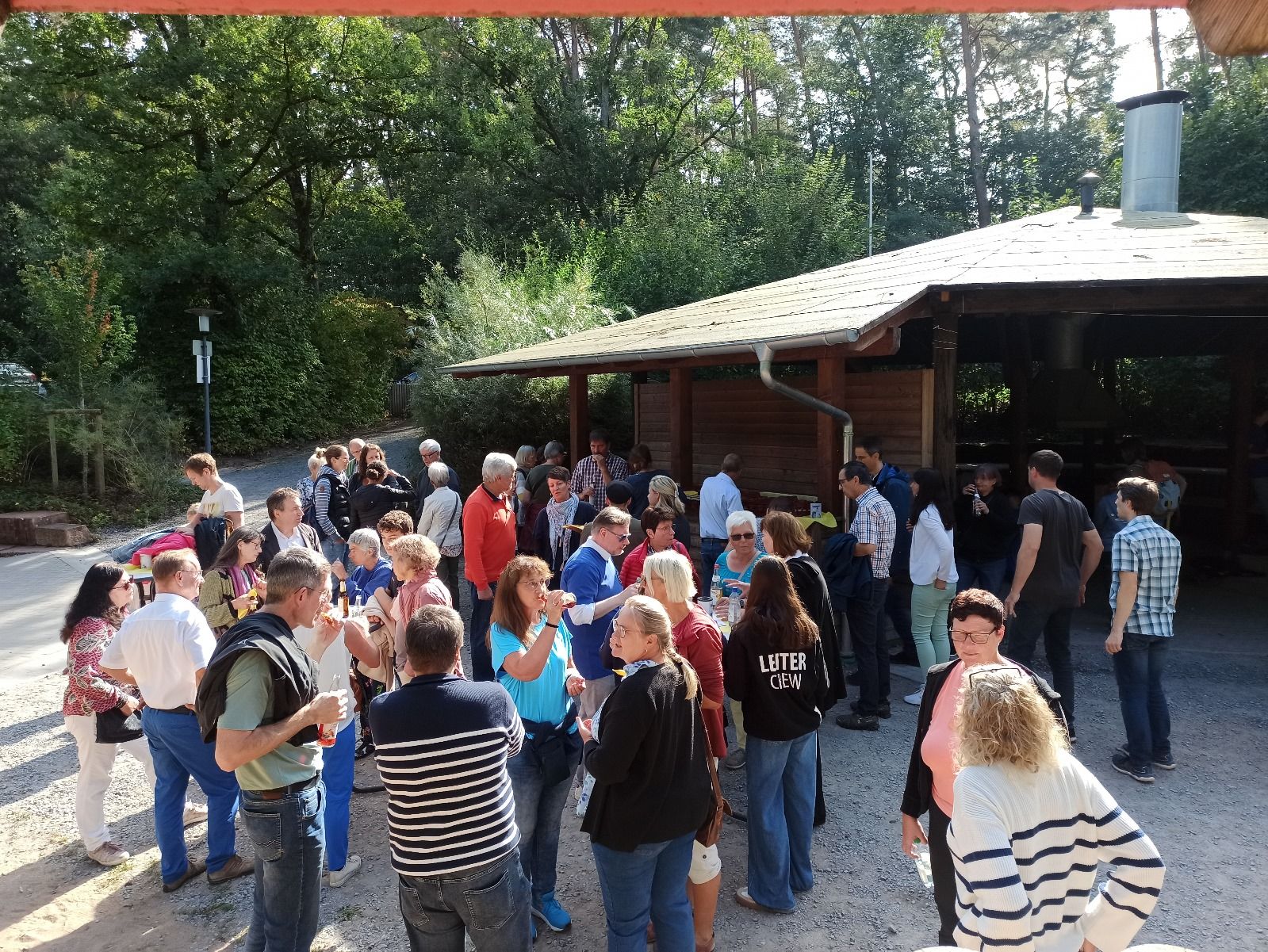 Nach dem beschwingten Gottesdienst verweilten viele noch bei Getränken und Kleingebäck, um miteinander ins Gespräch zu kommen und sich näher kennenzulernen. Gemeinschaft kann tragen und stärken in schwierigen Zeiten.