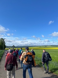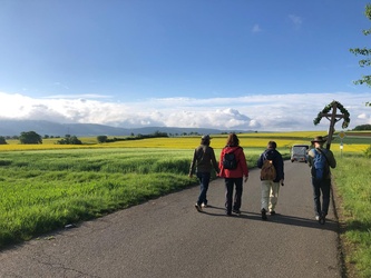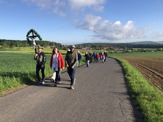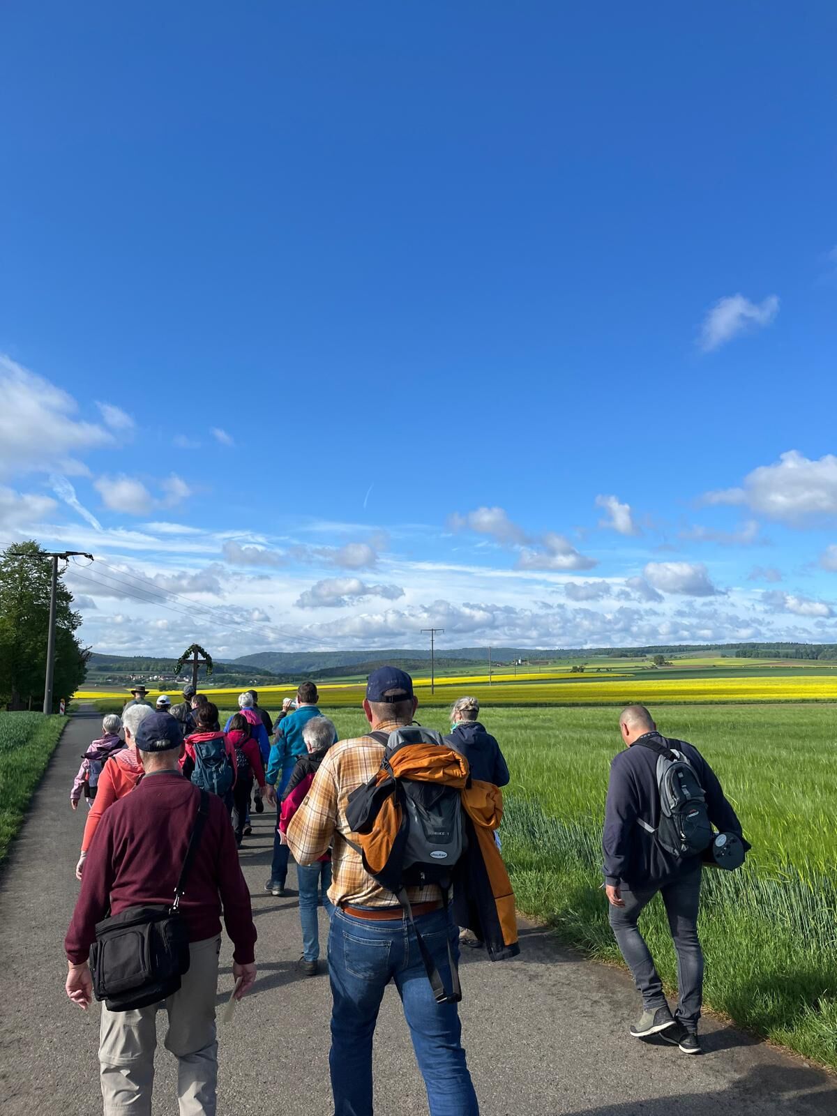 Am ersten Maisonntag starteten wir Wallfahrer aus der Pfarreiengemeinschaft Christus Salvator Elsenfeld mit einem Segensgebet „für den gemeinsamen Aufbruch als Pilger und Pilgerinnen der Hoffnung“ an der St. Antonius-Kirche im Ortsteil Schippach in Richtung Kloster Engelberg.