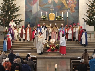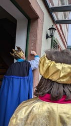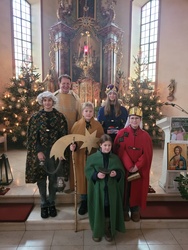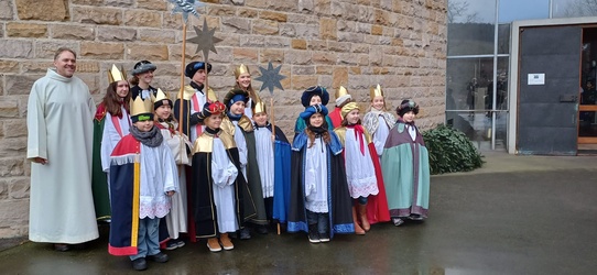 Mit der Umstellung der Sternsingeraktion haben wir auch heuer wieder gute Erfahrungen gemacht. Ein Segensbrief der Sternsinger wurden mit einem Segensaufklebern und einem Haussegen wurde per Post an die katholischen Haushalte unserer Pfarreiengemeinschaft geschickt. Die Sternsinger waren am 6. Januar in den Gottesdiensten und am Nachmittag an verschiedenen Plätzen in Elsenfeld, Rück-Schippach und Eichelsbach präsent. Die Sternsinger haben Lieder gesungen, ihre Segenssprüche aufgesagt und ein frohes neues Jahr gewünscht. Es war schön, dass sich an den Plätzen eine große Anzahl von Gemeindemitgliedern versammelt hatten. Auch die Seniorenheime wurden besucht. Auf Vorschlag des Roten Kreuzes in Elsenfeld, fand zum Abschluss der Aktion ein Beisammensein in der Turmstraße statt, wo es Kinderpunsch, Glühwein und Bratwürste gab. Danke an das Rote Kreuz für diese tolle Idee und auch dafür, dass die Sternsinger die Hälfte der Einnahmen als Spenden überreicht bekamen. Auf Wunsch besuchten die Sternsinger in unseren Orten auch die Häuser. So wurden ca. 60 Hausbesuche gemacht. Insgesamt waren in unserer Pfarreien-gemeinschaft 55 Kinder und Jugendlichen an der Aktion beteiligt.