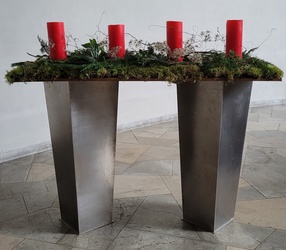 Statt der Lesung hörten wir die Geschichte eines Bürgermeisters, der jeder Familie eine Kerze und ein Brief zukommen ließ, mit der Bitte, die Kerze an das Fenster zu stellen und damit die Verbundenheit mit der Gemeinschaft zu zeigen. Die Kommunionkinder, die diesen Gottesdienst mitgestalteten, verteilten nun auch an jede Familie ein Licht, damit auch wir mit dem Anzünden der Kerze im Fenster unsere Verbundenheit zeigen. Nun wurde am Adventsgesteck die 1. Kerze mit dem Osterlicht angezündet und alle mitgebrachten Adventskränze geweiht. Pfarrer Skolucki sprach über die Bedeutung des Lichts im Advent. Die Kerze ist nicht nur Wachs, sondern gibt Licht, Wärme und Freude, die wir teilen sollen. Sie ist ein Zeichen der Freude, der Hoffnung und der Erwartung auf Jesus, Gottes Sohn. Im Advent heißt es aufmerksam zu sein, das Herz hell und bereit machen für Gottes Ankunft. Ein Zeichen setzen, ich bin bereit für Weihnachten, die Freude spüren, auch wenn es einem schwer fällt, die Vorfreude auf Weihnachten.