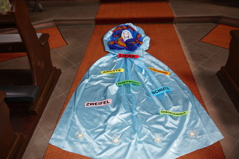 Am 21. Mai 2025 trafen wir uns zu einer Maiandacht mit dem Thema „Maria breit den Mantel aus“ in der St.-Johannes-Kirche in Rück. Im Mittelgang der Kirche lag ein gestalteter Schutzmantel Mariens und darauf die Begriffe: Schutz, Geborgenheit, Liebe, Zuwendung, Zweifel und Ängste. Überlegungen wurden angestellt: Was sagen die Worte aus? Wie gehören sie zu Maria? Daraus ergaben sich Fragen an Maria: Wer hat alles unter deinem Mantel Platz? Für wen bietest du Schutz unter deinem Mantel? Wen empfehlen wir dir? Wo kannst du mithelfen? Antworten waren: Der Mantel schützt uns, hüllt uns ein und lässt uns die Liebe Mariens spüren. Die Maiandacht wurde mit passenden Texten, Gebeten und Liedern zu allen Fragen und Antworten gestaltet. Danke an Alfred Happel, der uns auf der Orgel begleitete. Nachdem wir Maria um ihren Schutz und Hilfe gebeten hatten, gingen die Kirchenbesucher zum Seniorennachmittag in‘s alte Rathaus Rück. Hier warteten liebevoll geschmückte Tische, an denen es leckeren Kuchen und Kaffee gab . Dazwischen hörten wir Gedichte, Geschichten und Rätsel, alles rund um den Mai. Selbstverständlich kam auch das „Gebabbel“ nicht zu kurz, und so konnten wir alle, nach einem schönen Nachmittag, nach Hause gehen. Vielen Dank an die Kuchenbäcker und das Seniorenteam.