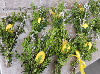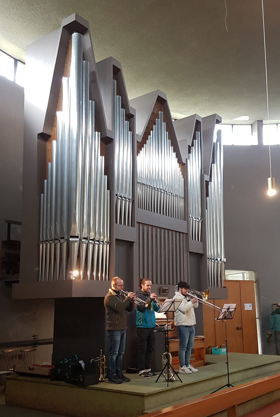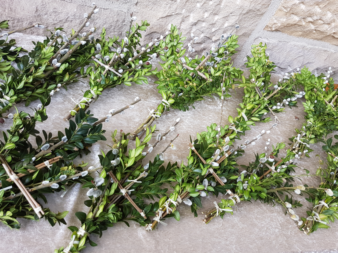 Wir trafen uns vor dem Haupteingang der St.-Pius-Kirche mit unseren Palmbuschen in der Hand, die von Pfarrer Dr. Heinrich Skolucki gesegnet wurden. Er erklärte, dass die Palmbuschen ein Symbol für Sieg und Leben bedeuten und ein Zeichen für Gottes Segen für unsere Häuser sind. Wir denken an diesem Tag besonders an den Einzug Jesus in Jerusalem. Auf einem Esel ist er in die Stadt geritten, die Leute standen am Straßenrand mit Palmen in der Hand und jubelten Jesus als ihren König zu. Jesus ist unser König, er ist kein normaler König mit Krone und Palast, sondern einer, der aus Liebe zu uns Menschen alles Leid ertragen hat und für uns Menschen gestorben ist. Er ist immer bei uns, begleitet uns und das ist ein Grund zum Feiern. Dieselben Leute, die ihn bejubelten, riefen nur Tage später „kreuzigt ihn“. Mit diesem Tag beginnt nun die Karwoche. Kar bedeutet: Klage, Trauer. Unter Orgelklängen zogen wir in die Kirche ein und hörten nun die restliche Passionsgeschichte, bis zu Jesus Tod. Sie wurde von zwei Lektoren und dem Pfarrer vorgetragen und durch die verschiedenen Stimmen war es eine lebendige Geschichte. Der Gottesdienst bekam seinen feierlichen Charakter durch das Musikblasensemble „Bohlender“, der Organistin Wicki Sauerwein und der Kantorin Maria Schmidt, die die Psalmen vorsang. Vielen Dank an Alle, auch dem Gemeindeteam, das die Palmbuschen gebunden hatte.