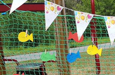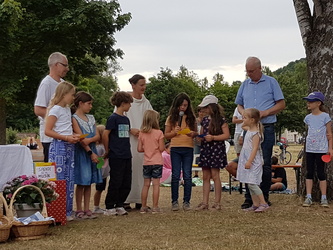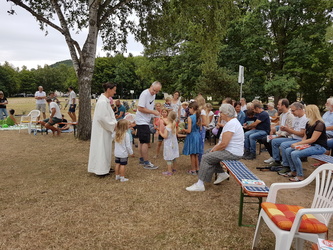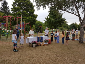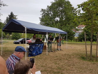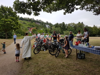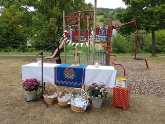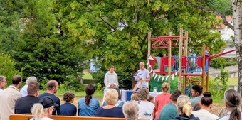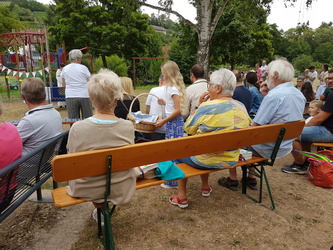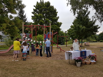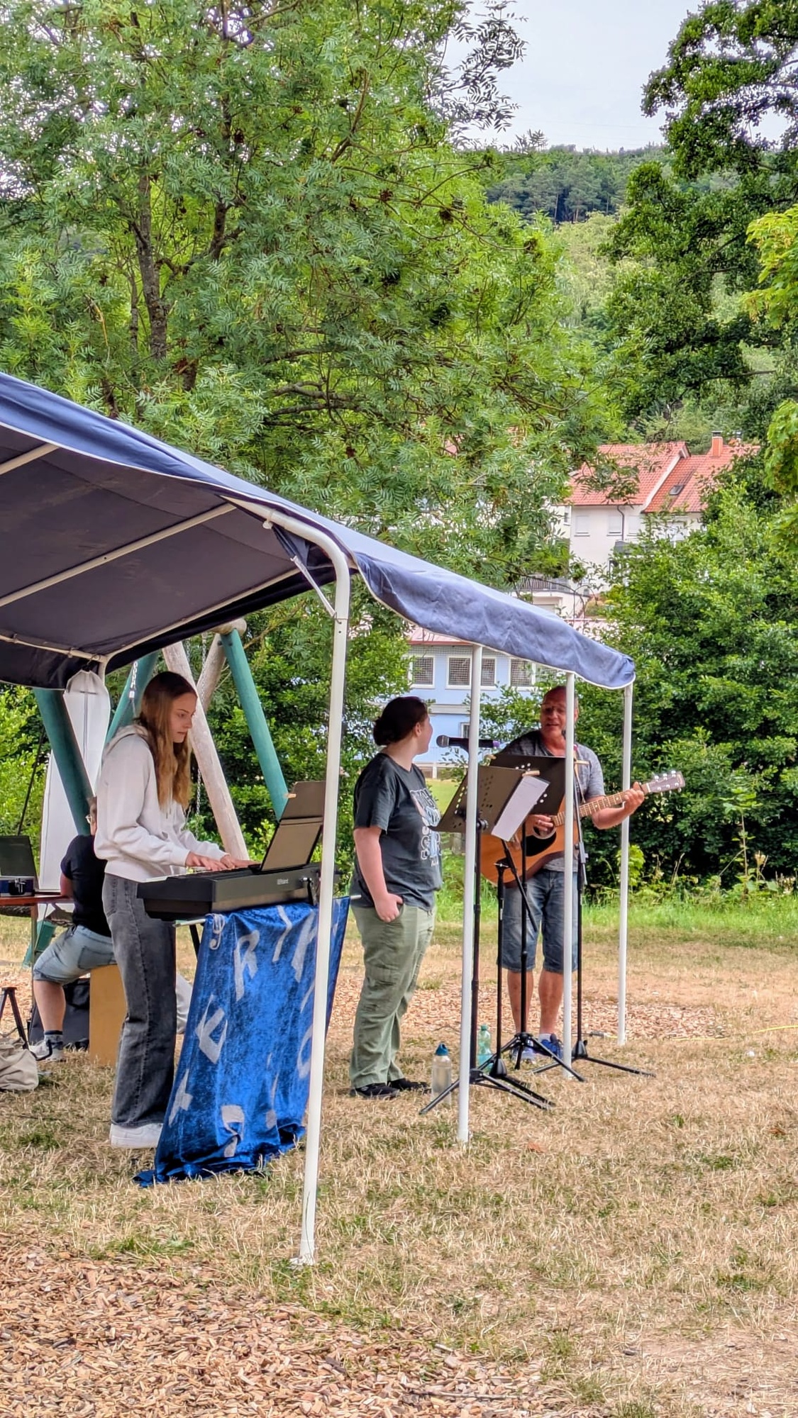 Am Sonntag, den 6. Juli 2025 waren Groß und Klein zu einem besonderen Gottesdienst unter freiem Himmel eingeladen. Dieser fand zu dem Thema „Unterwegs mit Sicherheitsnetz“ auf dem Spielplatz in Schippach statt. Gemeindeassistentin Verena Deuchert und Frank Zöller vom Kindergottesdienstteam hatten ihn vorbereitet. Musikalisch mitgestaltet wurde er von der Gruppe TERIKTO aus Amorbach, die uns auch schon in den Vorjahren begeisterte. Man konnte alles was rollt, ob schnell oder langsam, mitbringen und segnen lassen.