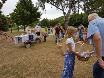 Vor dem Segen bedankte sich die Gemeindeassistentin bei der musikalischen Begleitung, sowie für´s Zusammensein und die Gemeinschaft miteinander vor Gott, aber auch für (S)eine schützende Wolkendecke, die die Zeit unter freiem Himmel sehr angenehm machte. Der Gottesdienst endete mit der Fahrzeugsegnung und der Bitte um Segen, auch für alle, die mit den rollenden Gefährten unterwegs sind. Nach dem Abschlusslied: „Jesus berühre mich“ fand unter den Anwesenden ein reger Gesprächsaustausch statt. Vielen Dank an Alle, die dazu beigetragen haben, diesen besonderen Gottesdienst an einem ungewöhnlichen Ort zu feiern.