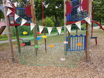 Mama, Papa, Großeltern, Tanten… Wenn man sich in blöden Momenten gut aufgehoben fühlt, da ist auch Gott mit uns, da begleitet uns Jesus. Mit vielen guten Menschen entsteht ein Netz der Gemeinschaft, getragen von Gott. In dieses Netz dürfen wir unsere Bitten legen und genau das taten die Jüngsten. Auf Fischen fanden die Fürbitten Platz und wurden an das Netz gehängt, welches uns in der Kirche "St. Pius" an diesen Gottesdienst erinnert. (Wer möchte, darf die Bitten gerne mit eignen Gedanken erweitern und mit Klammern am Netz befestigen.) Zum „Vater unser“ versammelten sich die Kinder um den Altar und versorgten anschließend alle Gottesdienstbesucher mit Brot bei der Agapefeier.