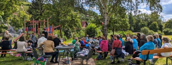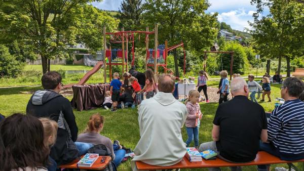 Am Sonntag, den 16. Juni 2024, fand in Schippach wieder ein Spielplatzgottesdienst statt, diesmal zum Thema „Da kommt etwas ins Rollen“. Er wurde vom Kindergottesdienstteam in Elsenfeld und Rück-Schippach, unterstützt vom Gemeindeteam Rück-Schippach, vorbereitet und gestaltet. Viele Familien und Kinder hatten sich zum Gottesdienst eingefunden, der von der Band Terikto musikalisch umrahmt wurde.