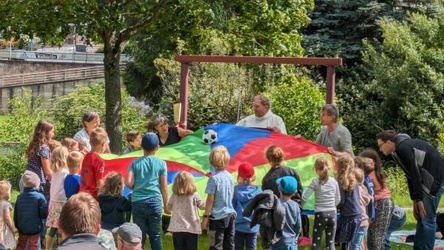 Mit dem Beginn der Fußball Europameisterschaft in Deutschland rollt wieder der Ball. Viele sind mit dem Rad oder dem Roller zum Gottesdienst gekommen und her gerollt. Und an Ostern da kam mit dem weggerollten Stein wirklich etwas ins Rollen. Die Botschaft von der Auferstehung verbreitete sich über die ganze Welt und seit dieser Zeit treffen sich Christen am Sonntag, um aus dieser Hoffnung heraus zu leben und Mut und Kraft für ihr Leben zu finden. Mit einem Fallschirm konnten die Kinder spielerisch den Ball ins Rollen bringen. Nach den Fürbitten folgte, wie zur Zeit der frühen Christen, eine Agapefeier. Die Kinder verteilten das gesegnete Brot, bevor am Ende alles was rollt - Fahrräder, Fußbälle, Roller, Kinderwägen - und deren Besitzer gesegnet wurden. Es war ein toller Gottesdienst an einem ungewöhnlichen Ort. Bringen wir als Christen heute in unserer Gesellschaft, in unseren Familien und Schulklassen, etwas ins Rollen.