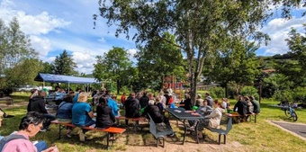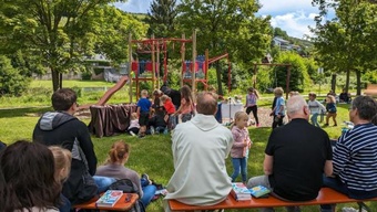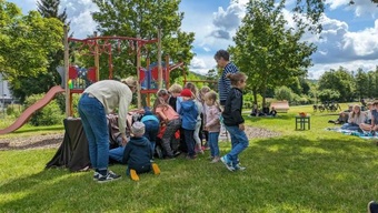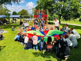 Am Sonntag, den 16. Juni 2024, fand in Schippach wieder ein Spielplatzgottesdienst statt, diesmal zum Thema „Da kommt etwas ins Rollen“. Er wurde vom Kindergottesdienstteam in Elsenfeld und Rück-Schippach, unterstützt vom Gemeindeteam Rück-Schippach, vorbereitet und gestaltet. Viele Familien und Kinder hatten sich zum Gottesdienst eingefunden, der von der Band Terikto musikalisch umrahmt wurde.