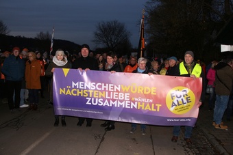 Ein Zeichen für Gemeinschaft und gegen Menschenverachtung haben am Abend des 31. Januar 300 Teilnehmer beim Friedensweg und Friedensgebet unter dem Titel "Wir (B)rücken zusammen, gesetzt. Die Ökumenische Veranstaltung wurde organisiert von den katholischen und evangelisch-lutherischen Seelsorgeteams aus Elsenfeld und Obernburg, der Arbeitsgemeinschaft christlicher Kirchen (ACK) und den Pfarreiengemeinschaften Christus Salvator Elsenfeld, sowie Lumen Christi entlang der Mümling. Sie stand unter dem Motto: "Menschen-würde, Nächstenliebe, Zusammenhalt."