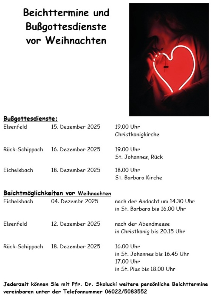 Jederzeit können Sie mit Pfr. Dr. Skolucki weitere persönliche Beichttermine vereinbaren unter der Telefonnummer 06022/5083552