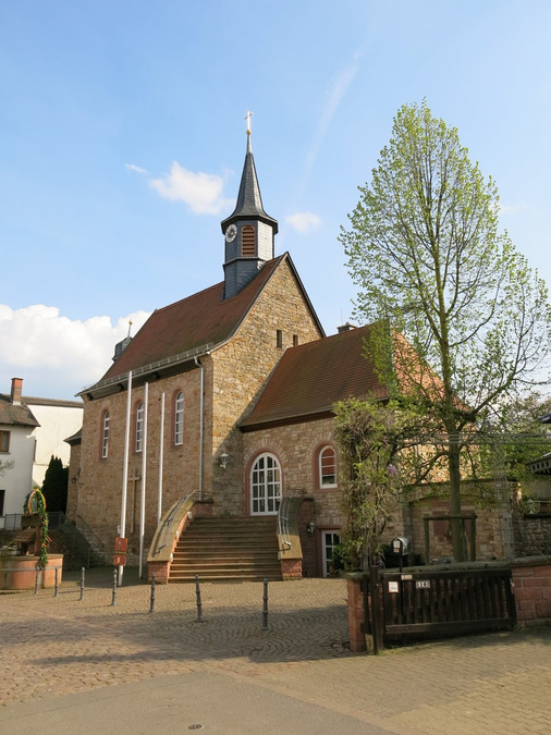 Der Pfarrsaal befindet sich links neben der Kirche im Untergeschoss des Pfarrhauses.